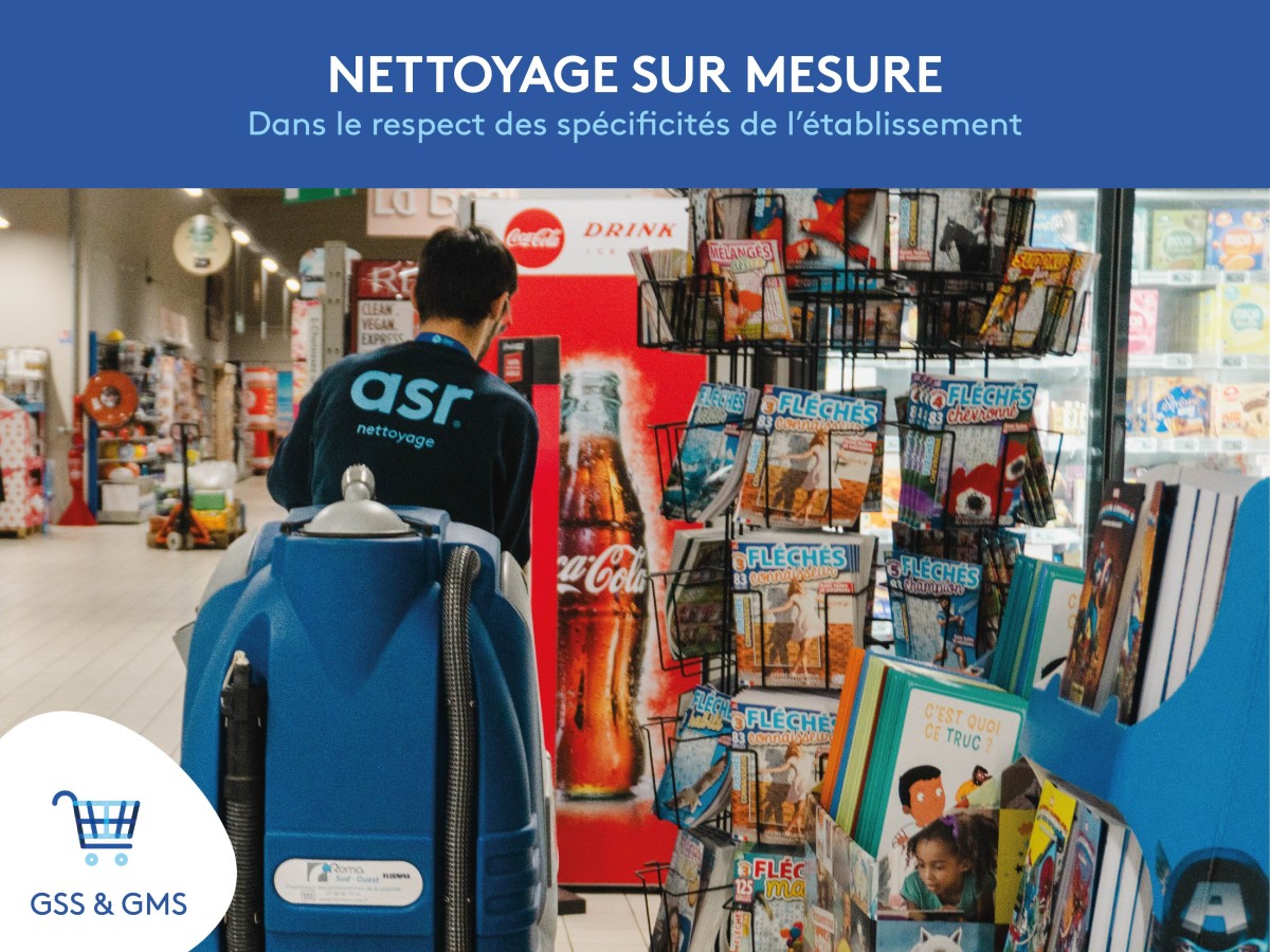 ASR Nettoyage accompagne les GSS & GMS avec des prestations sur mesure : sols, rayons, caisses, bureaux et parkings toujours nickel đź›’